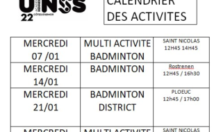 UNSS-Calendrier des activités (janv/Fev 2026)